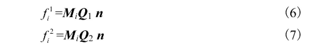 式中MiQi*n和MiQ2*n分别表示主从动轮的各单项偏差在啮合线方向综合作用的效果。齿轮整体误差反映了齿轮各单项偏听偏差为主从动轮在接触点Mi 的齿轮整体误差,则有:
