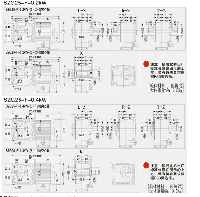 SZG-F直交轴中型25框减速机图纸及详细参数: