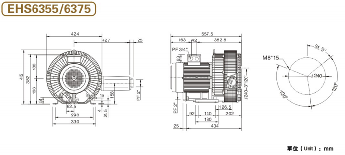 双段鼓风机EHS6355/6375本产品高风压,大流量,低噪音,无油污染,品质稳定,交货快,价格合理,是您的首选! 特点: 小型.重量轻.高风压前倾式叶片设计,体积小、质量轻较有高压力之产生。低噪音新设计,能消除切风时生之高频及特昳之消音材质,大幅降低噪音比。 低震动叶片均经过电脑平衡校正与高精密的机械加工,使震动降到最低。